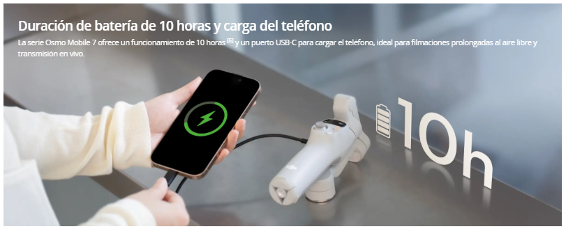 Duración de batería de 10 horas y carga del teléfono.