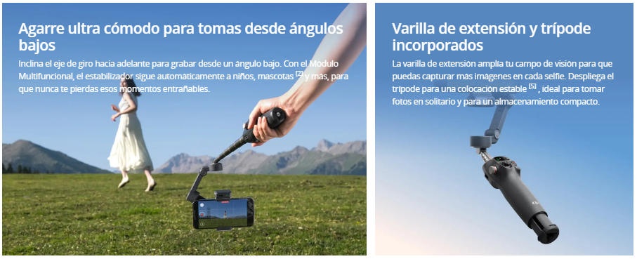 Varilla de extensión y trípode incorporados.