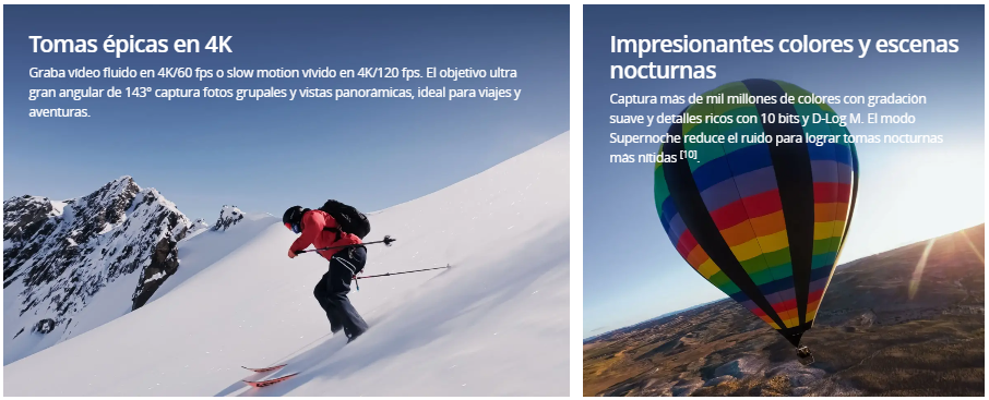 - 4K/60 fps y campo de visión amplio de 143°.