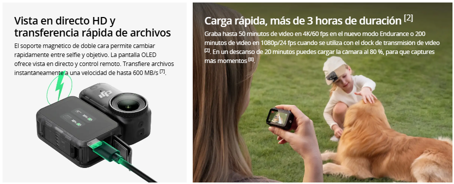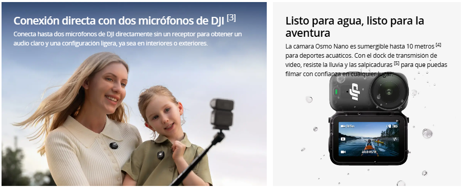- Conexión directa con dos micrófonos DJI.
